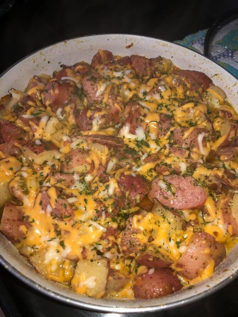 1 lb. thinly sliced smoked sausage*, boiled until tender but not mushy