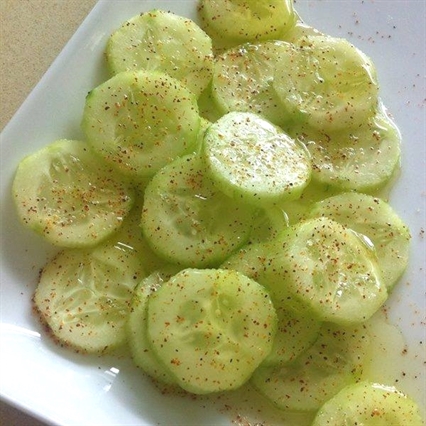 This healthy Cucumbers with a BANG! is my new favorite afternoon snack. It is so easy to make and tastes delicious. Cucumber’s increase your energy and boost your metabolism. The olive oil is a healthy fat and lemon juice helps detox and cleanse your blood of impurities. The cayenne pepper is a also a detox agent.