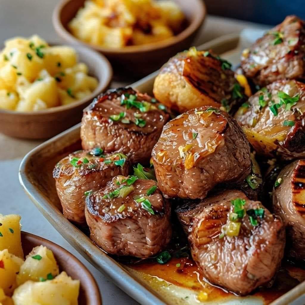 Get ready for a flavor explosion with these Garlic Butter Steak Bites and Cheesy Smashed Potatoes! Perfect for a comforting, indulgent meal.