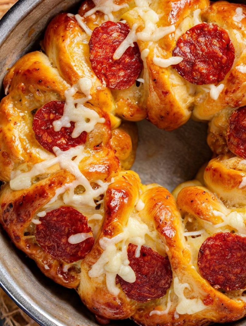 Pizza Monkey Bread combines the irresistible flavors of traditional pizza with the hands-on joy of monkey bread. This creative dish blends gooey cheese, zesty tomato, and savory pepperoni with the playful, tear-and-share appeal of monkey bread, making it a crowd-pleaser at gatherings, family meals, or casual hangouts. Made with convenient refrigerated canned biscuits and pepperoni slices, this recipe offers a hassle-free approach to a flavor-packed treat. Though not steeped in history, Pizza Monkey Bread has quickly won over comfort food lovers seeking a fun, savory snack.