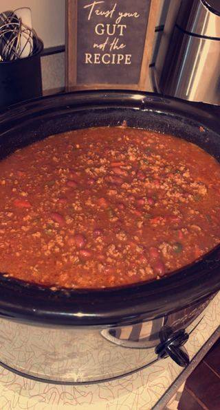 - Serve hot, topped with your favorite chili toppings like shredded cheese, sour cream, green onions, or crushed tortilla chips.