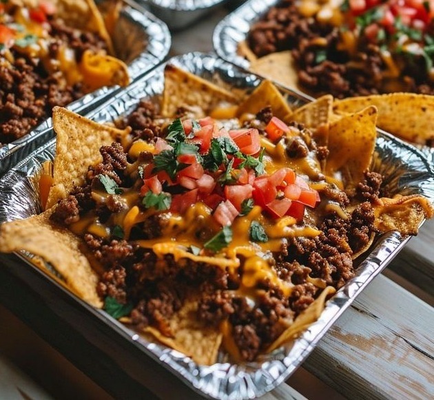 You may be asking why on earth you would want to bake nachos in a foil pan. Well, my darlings, it’s as easy as pie, leaves very little mess, and lets you be creative with toppings. And since they are easily transported in a tin foil tray after preparation, they are great for bringing cheer to neighborhood gatherings or sharing with neighbors. Simply said, nachos are like a comforting hug—best eaten with friends and family.