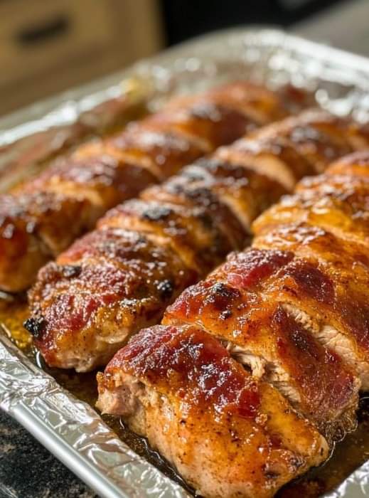 A pork tenderloin encased in crisp bacon and glazed with a hint of brown sugar is an extraordinary dish. Sunday meals and get-togethers with loved ones are evoked by this dish. This delicious and somewhat sweet dish is sure to warm you up and fill you up. The brown sugar creates a tempting coating, and the bacon gives it a delicious crunch. This dish will be a hit with everyone in the family and is great for special occasions.