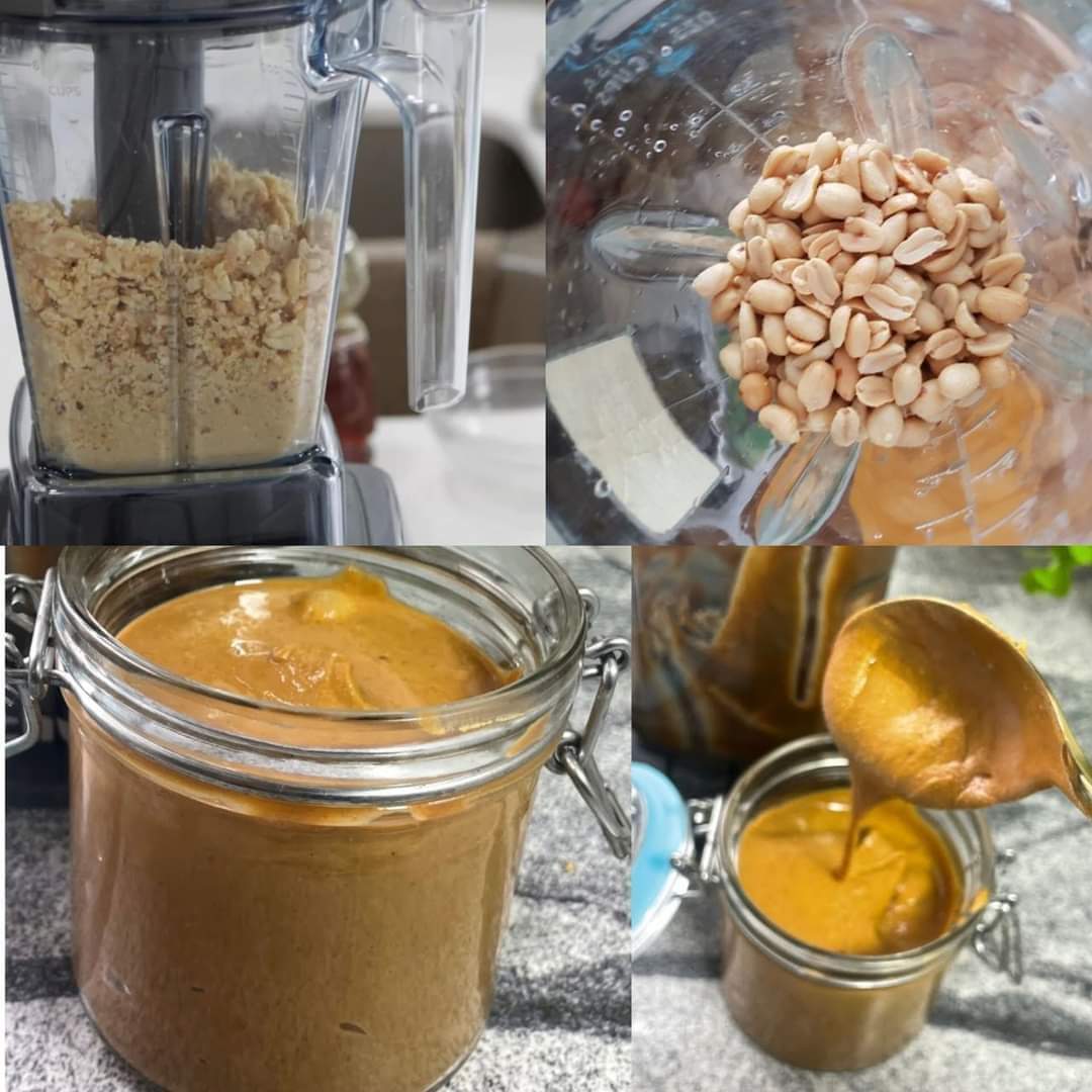As the peanuts blend into a paste, you can add 1-2 tablespoons of olive oil to help achieve a smoother, creamier consistency. Add the oil gradually, blending well after each addition.