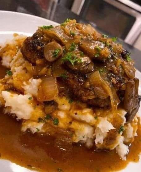 Imagine a perfectly cooked, flavorful hamburger patty transformed into a mini-meatloaf, sautéed in butter, and then smothered in a rich mushroom gravy that will leave you craving more. If you prefer an Onion Gravy, feel free to make it your own. The choice is yours because this dish is all about making you and your loved ones feel complete and comfortable.