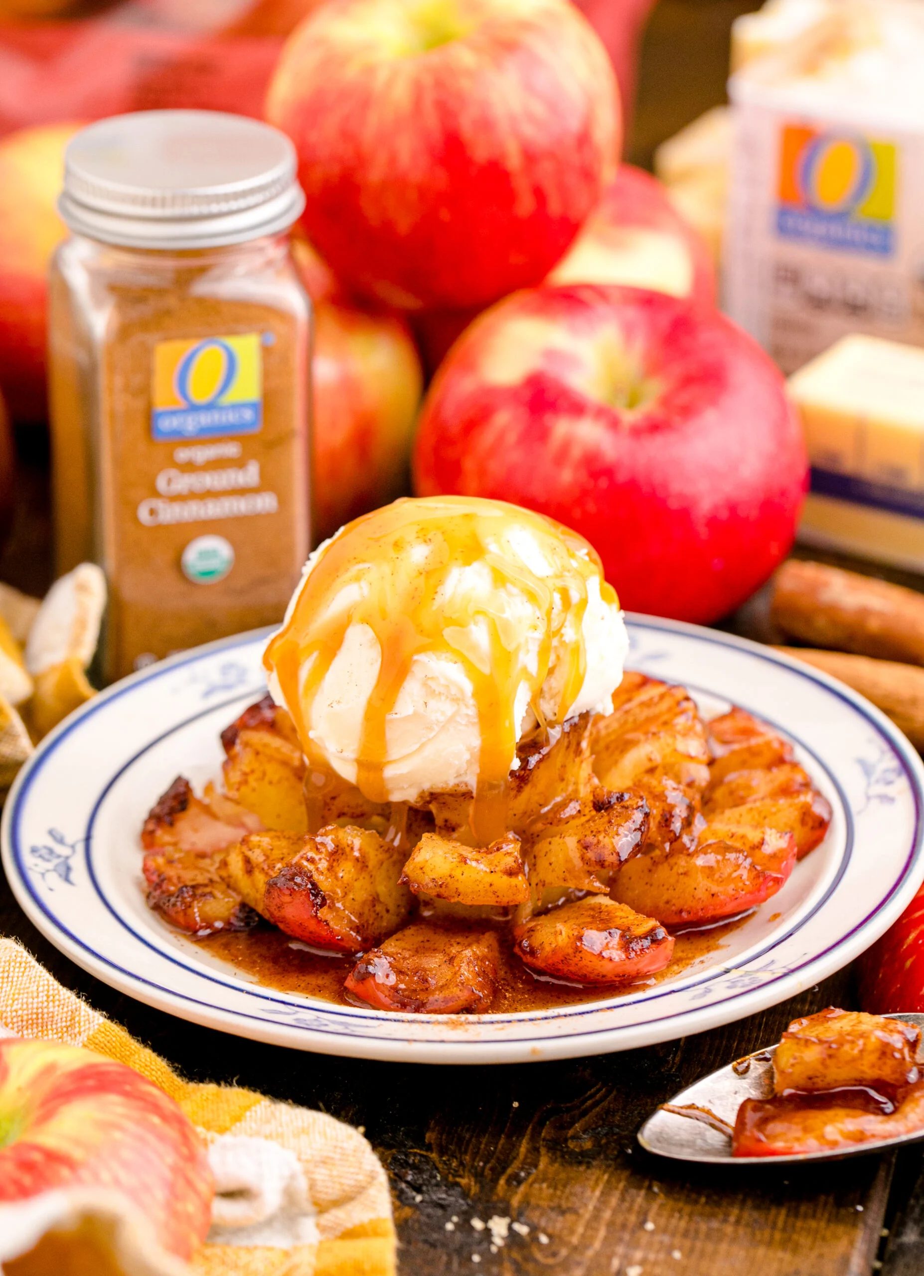 • Extra toppings: Vanilla ice cream, cinnamon, and additional caramel sauce