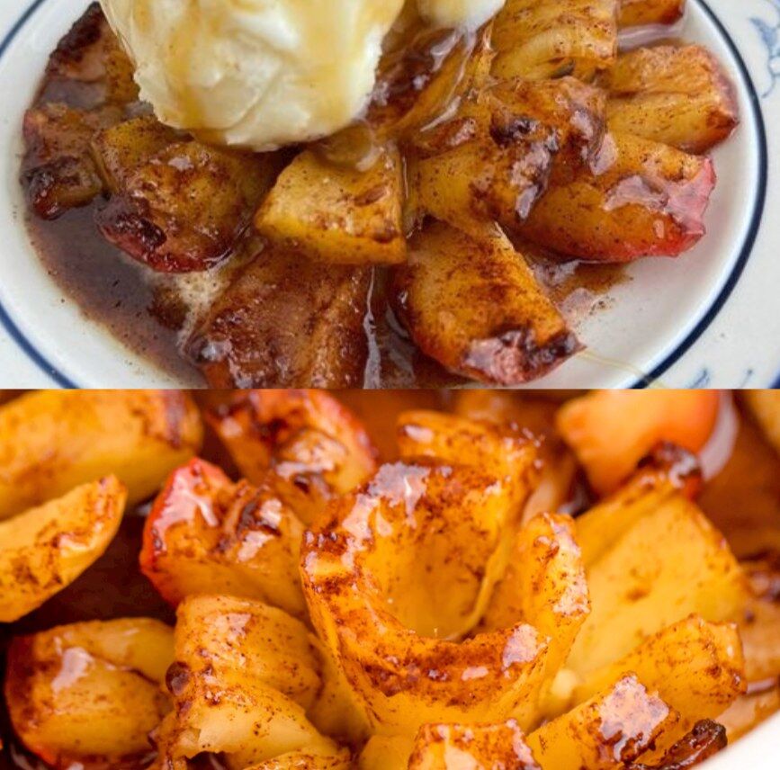 • Extra toppings: Vanilla ice cream, cinnamon, and additional caramel sauce