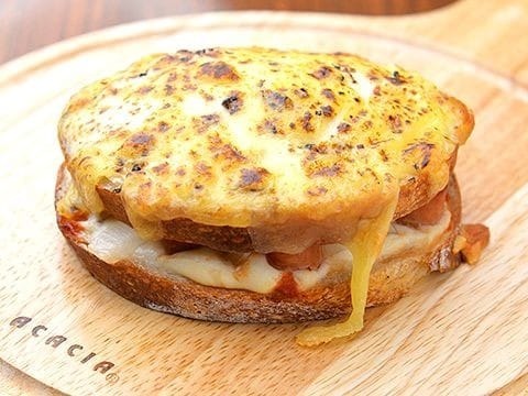 Bake until bottom slice of bread is golden brown and cheese has begun to melt, about 3 to 5 minutes.