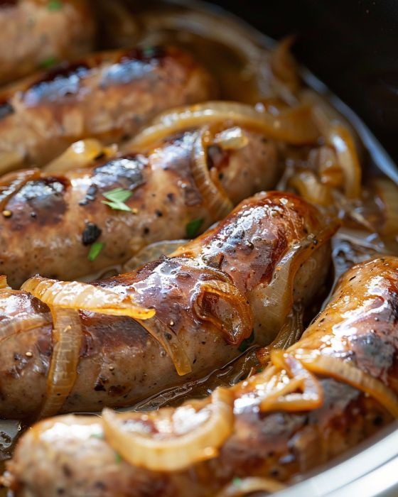 The delectable Slow Cooker Caramelized Onion Beer Brats are the ideal centerpiece for any event including comfort food, since they combine German and Midwestern American flavors. This meal pays homage to the deep bratwurst roots that German immigrants planted in the Midwest and the many generations that followed. Succulent and intensely delicious brats, onions, and beer come together in the slow cooker, making this recipe both easy to make and delectable. Because slow cookers are so easy to use, you may relax with friends or take it easy during the day without worrying about what’s cooking. Anyone seeking to effortlessly prepare a substantial, crowd-pleasing supper will find this dish to be an ideal option.