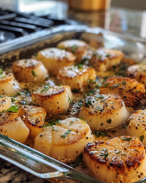 Baked scallops are really adaptable; you can use them to complete a variety of dishes. For a lighter side, try a garden salad with a light vinaigrette. Or, for a heartier meal, try them over linguine. To add a dash of country charm, serve with warm crusty bread to soak up all that buttery goodness!