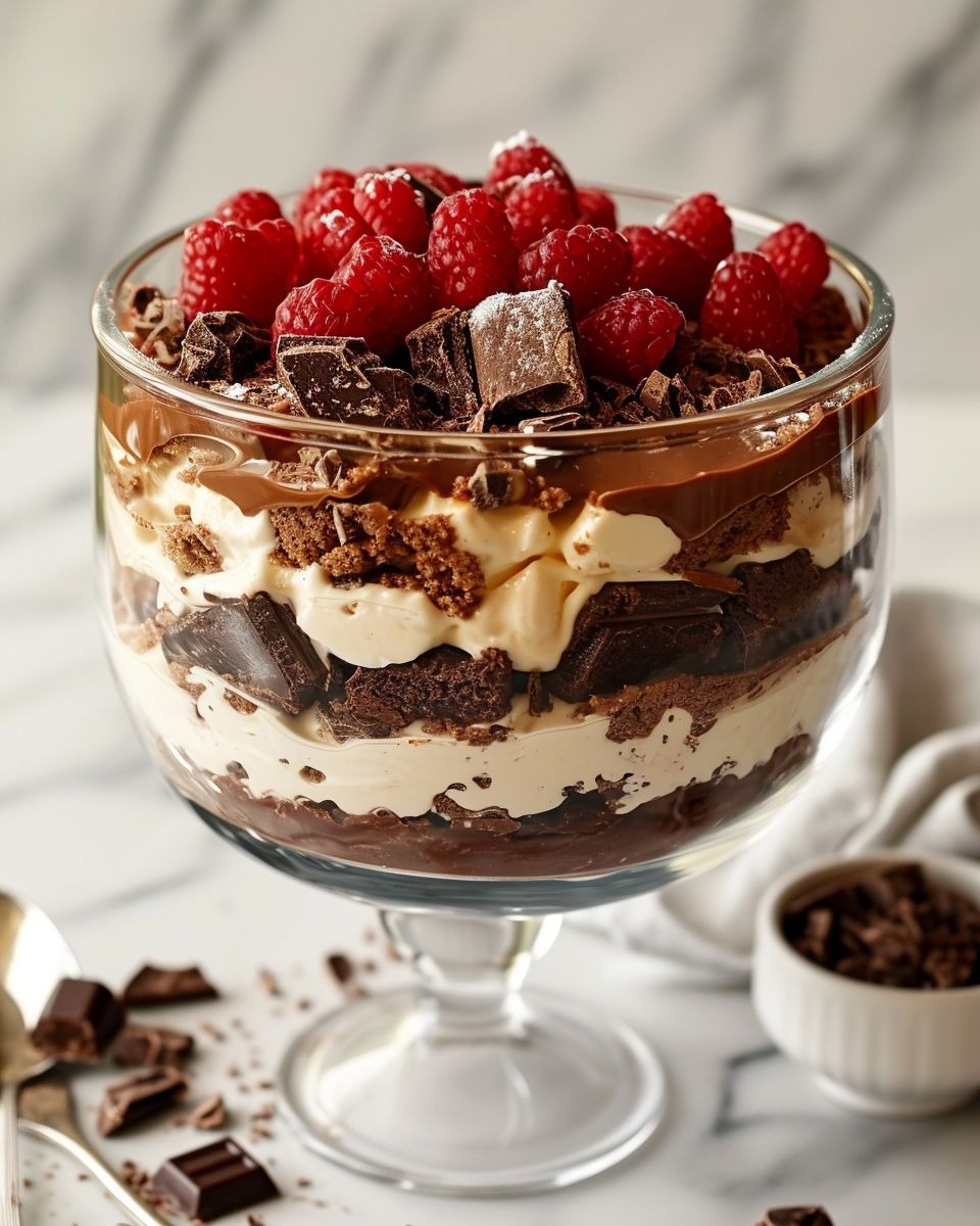 Gone are the days of complicated recipes. This chocolate trifle recipe uses a convenient brownie mix, guaranteeing a decadent taste experience without the hassle. Whether you’re hosting a dinner party or enjoying a family gathering, the chocolate trifle will not only tantalize your taste buds but also impress your guests as a stunning centerpiece. Plus, it’s incredibly versatile, allowing you to add your own creative twists and personalization.
