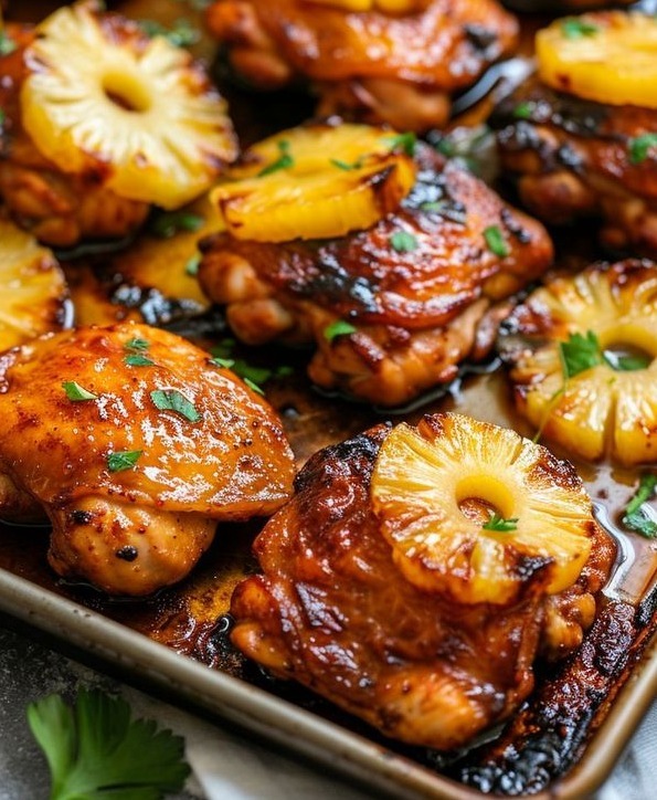 Ingredients: – 3 pounds of chicken thighs with bones and skin – 1 cup of pineapple juice