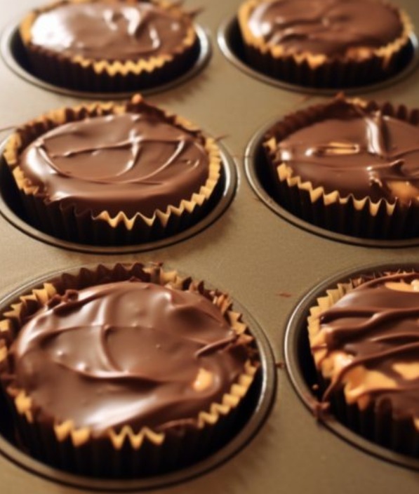 Chocolate Layer: Melt chocolate chips in a separate pan and ladle this into each formed cup.